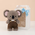 A cuddly Grey Koala Plush in brown overall made from soft, skin-friendly materials perfect for little ones. Ideal for birthdays, gifts, and snuggles, this adorable companion brings comfort and joy to kids of all ages.